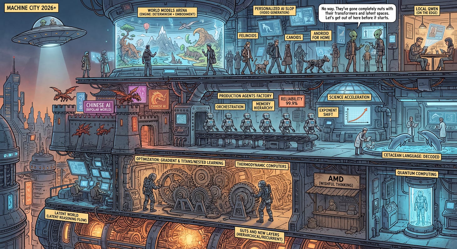 I wouldnât be surprised if a new good gradient optimization algorithm appears. I think a breakthrough in understanding is brewing there. Beyond purely gradient methods, I expect a larger zoo and crossbreeding with evolution. I also expect development of the Titans/Nested Learning theme.