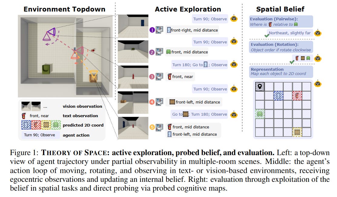 Earlier this year I read Theory of Space [published an auto-review here] by Zhang et al. — a paper that tests whether multimodal models can build “cognitive maps” when exploring partially observable environments (think: grid worlds where you can only see what’s nearby). They found two striking things: models are much worse when they have to actively explore vs. receiving everything at once (the Active-Passive Gap), and they can’t update their beliefs when the environment changes (Belief Inertia).