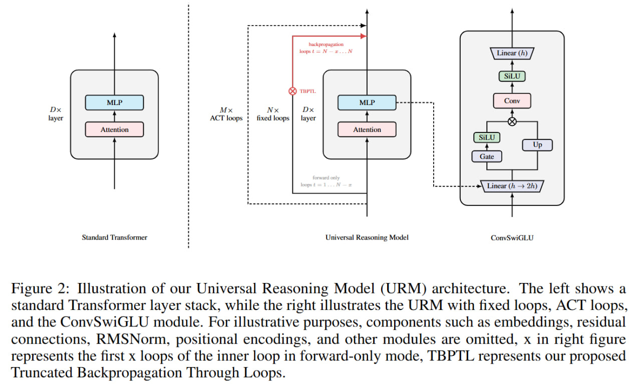 Unlike TRM/HRM, the URM authors made a more custom transformer with ConvSwiGLU and Truncated Backpropagation Through Loops (TBPTL).